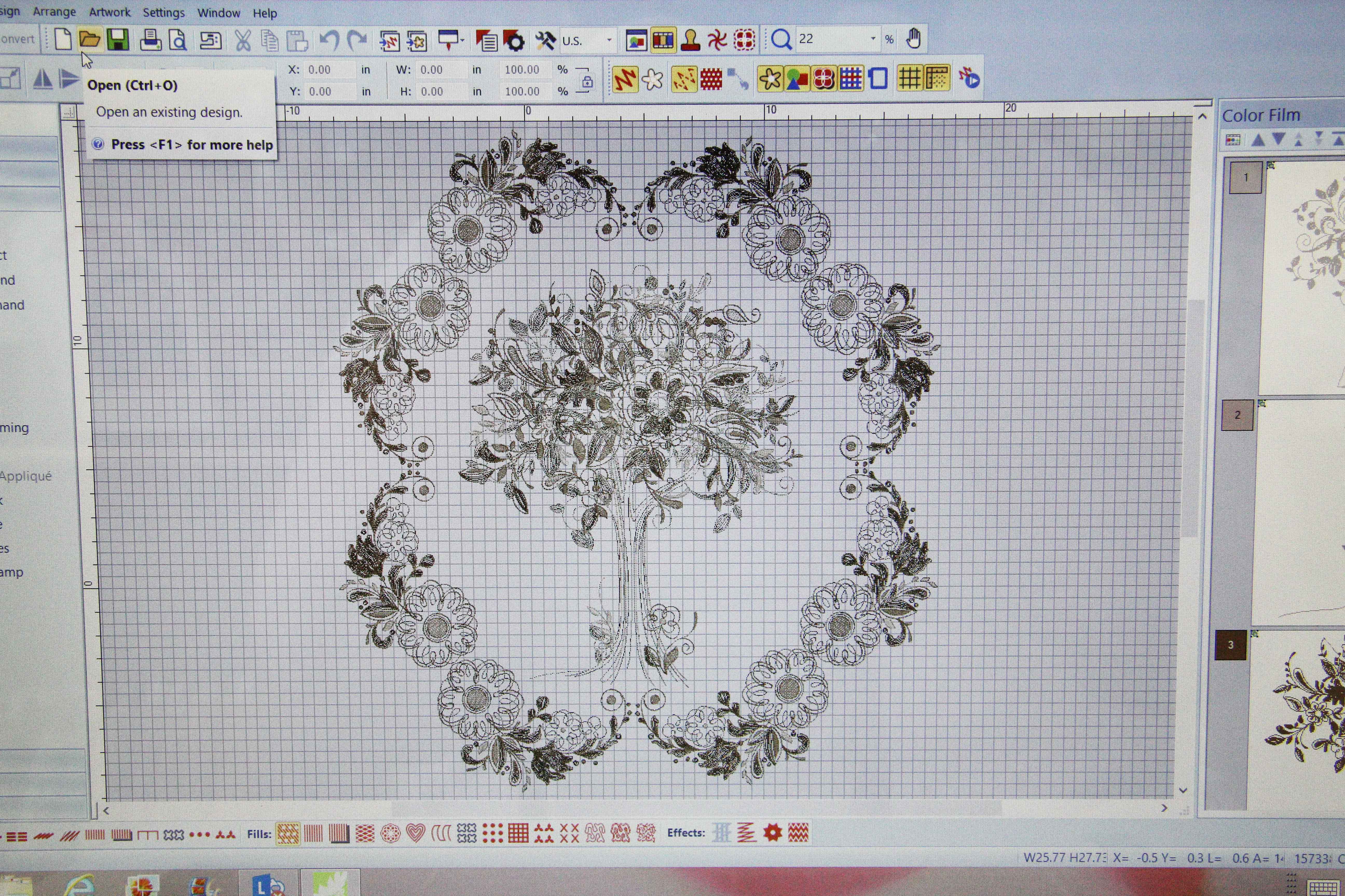 I didn’t even start with a design (as recommended by Amanda from Bernina) with 3 hoopings. Nope.
