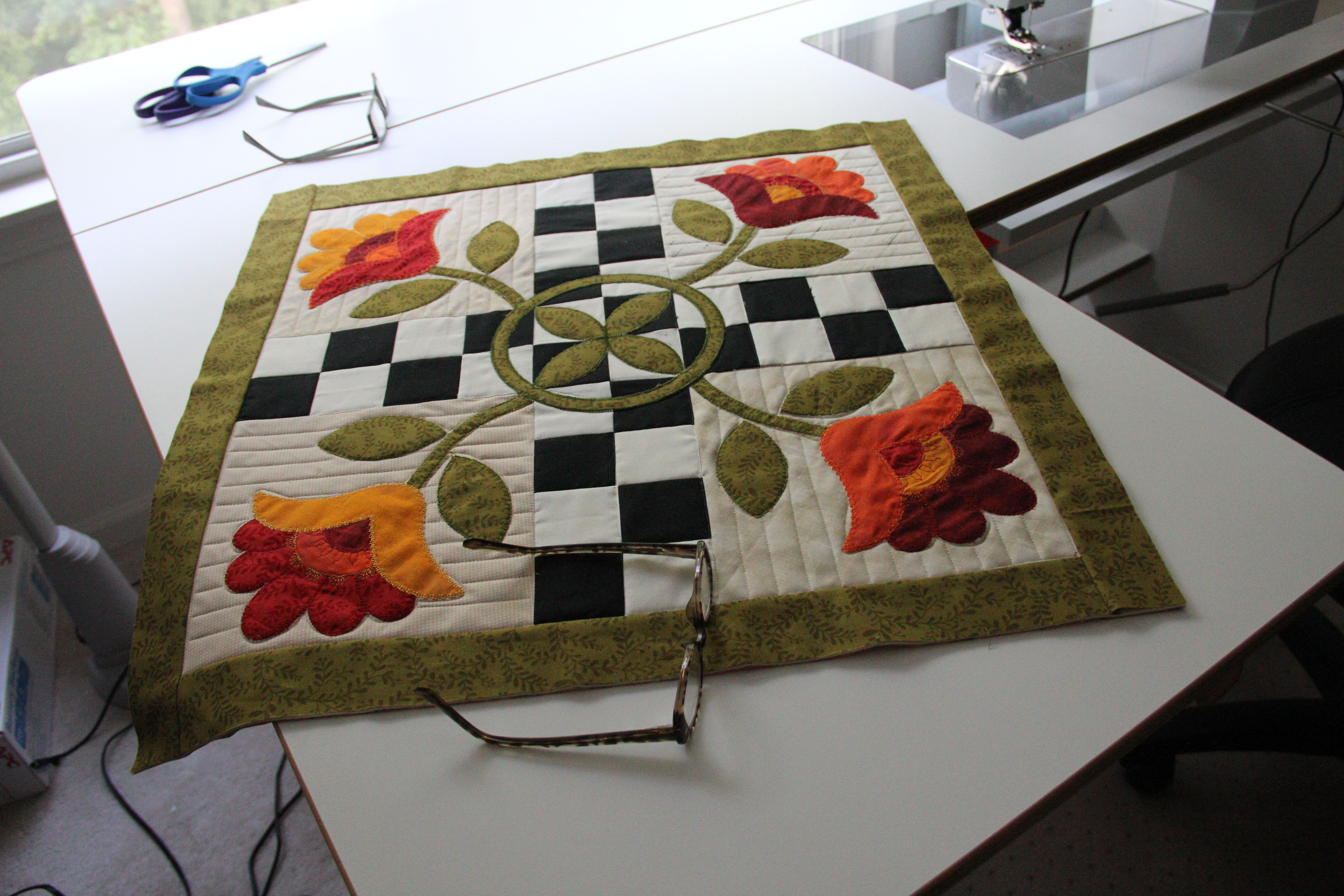 Above, over 120 – 4 1/4 in. 9 patch squares. The quilt still has a long way to go.